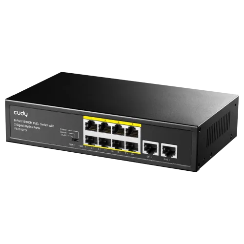 Model: GS1010PE Up to 120 watts total PoE budget Up to 30 watts PoE power one port 8 x 10/100/1000Mbps PoE+ ports 2 x 10/100/1...
